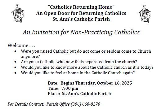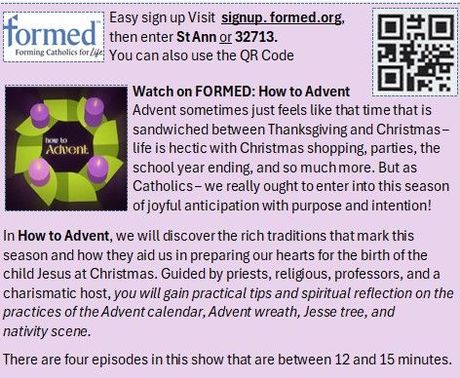 Times will be announced at Mass, Bulletin, Myparish App, Website and Facebook page.
